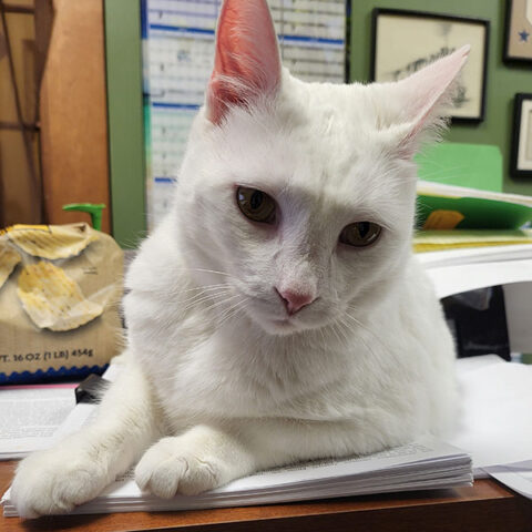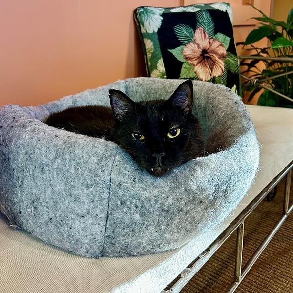 Jasper has made an amazing transition and has had free run of the office since early 2025. Except on the busiest days, you’ll find him greeting you in the hallway and accepting all the love anyone wants to give him. He has lots of mamas at the office and can always pick out which patients love cats too. It’s still so amazing the progress he’s made while being feral in early 2024, and Dr. Bowman-Hensley couldn’t be more proud of him.