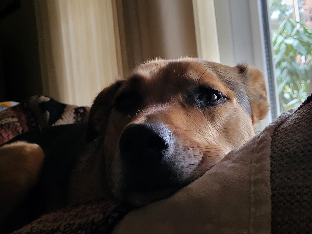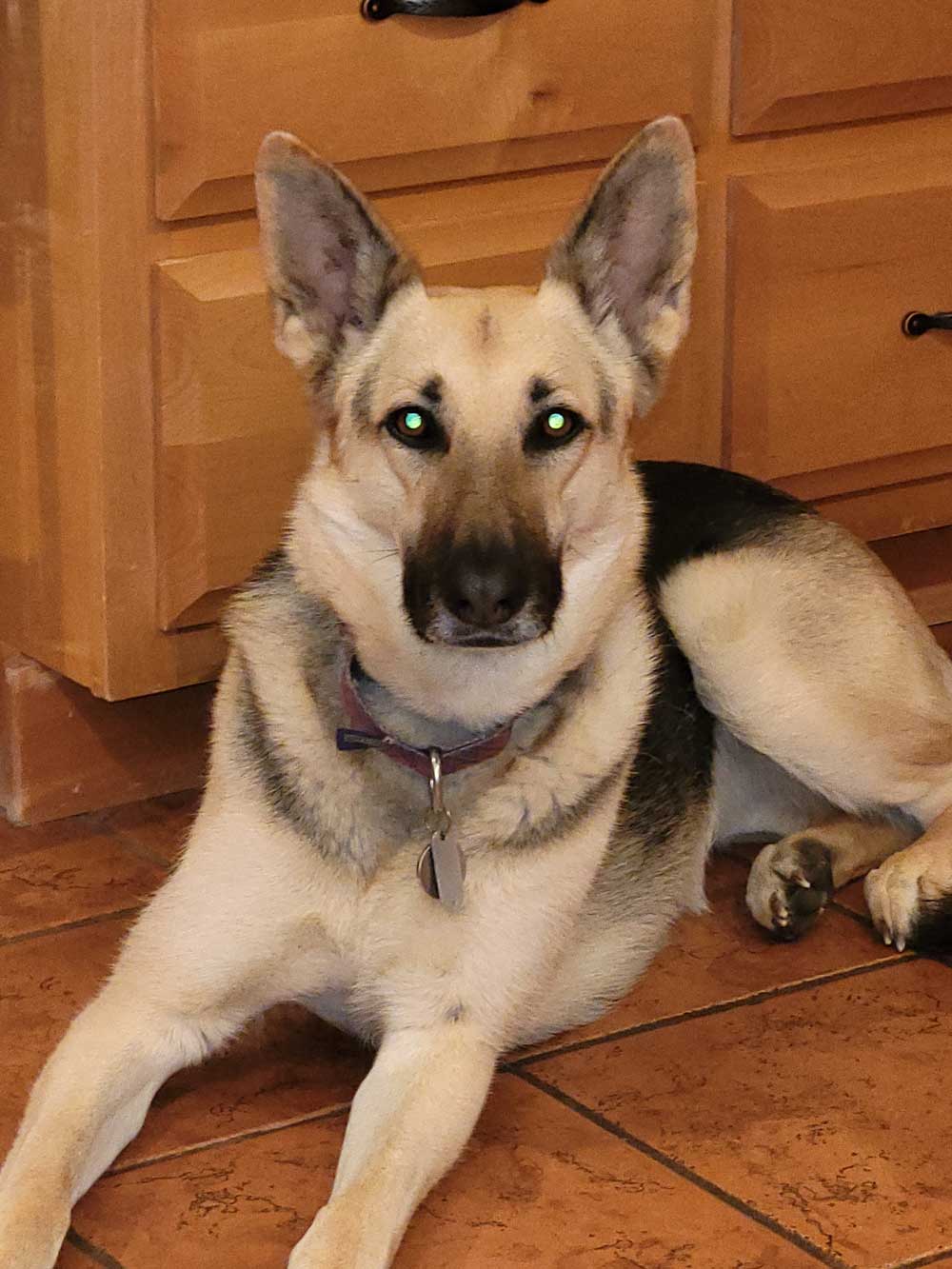My third anniversary with Mom and Dad was 11/11/2025, though I’m really about six years old like Rocky and that hateful Casper! I’ve come a long way from being severely underweight and shut down – it was a long journey, but I had the right people to help me. I’m the queen of the home (Casper only thinks she is!) and Rocky’s best friend. Raven is a little annoying, but I’m helping her become a good addition to the pack. Can’t she just grow up faster?! I’m a great watchdog but still so anxious and afraid of certain things, especially car rides. Mom depends on me so much when we’re out because I’m so good at seeing what’s around us – I scare off people and bears equally! I’ve had the best year so far with my health, and I’m looking forward to another great year with Mom and Dad.